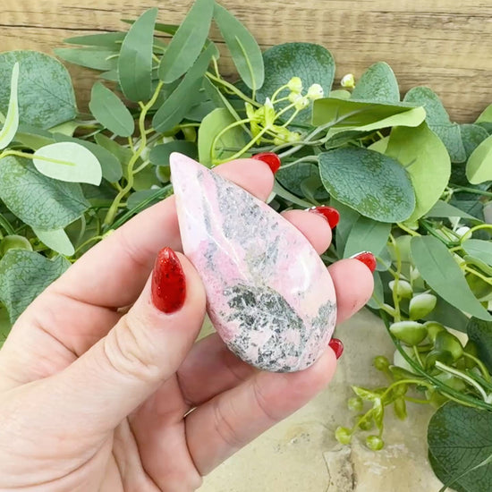 - Included: One Rhodochrosite Pear-Shaped stone and our custom Metaphysical Information Card.