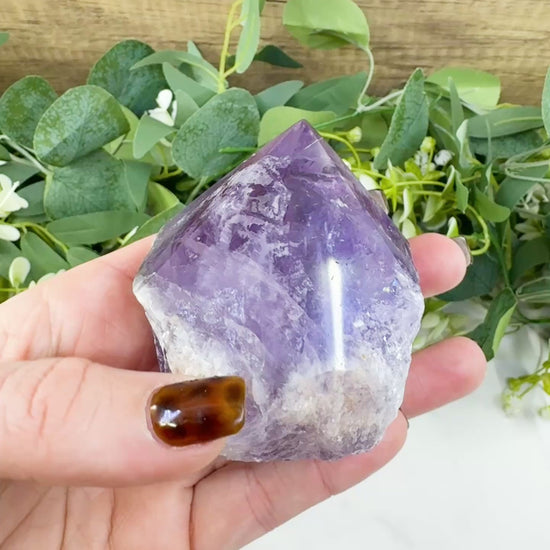 Amethyst Standing Point No. 2 (10oz) – Large Rough Base Polished Tower for Intuition & Tranquility
