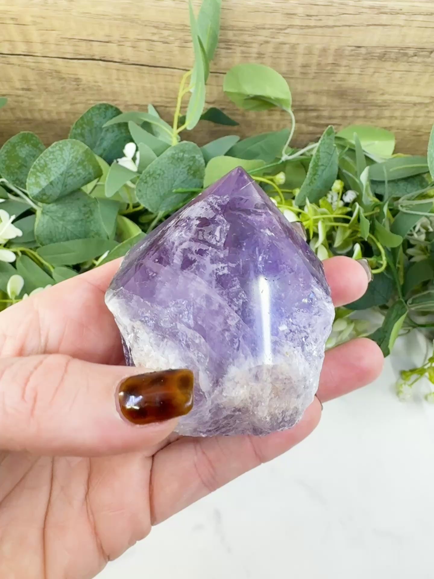 Anchor your spiritual practice with the calming and expansive energy of this Amethyst Rough Cut Base Point (Specimen No. 2). Tipping the scales at a substantial 10oz, this tower is a powerful example of nature's duality. It features a wide, rugged, unpolished base that grounds the stone's vibration, contrasted by a masterfully polished termination that directs high-frequency energy into your environment. This specimen displays rich, saturated violet depths and unique internal crystalline structures that shimmer when caught in the light, making it a stunning focal point for any altar or sacred space.
