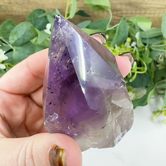 Enhance your spiritual sanctuary with the tranquil energy of this Amethyst Rough Cut Base Point (Specimen No. 3). This 5.6oz tower beautifully balances raw, earthy texture with a precision-polished point that directs high-vibrational energy into your space. Featuring a spectrum of violet hues and natural crystalline inclusions, this free-standing specimen is a perfect tool for those seeking to quiet the mind and deepen their connection to higher consciousness. Its rugged base provides a strong energetic anchor, making it an ideal companion for both meditation and daily emotional support.