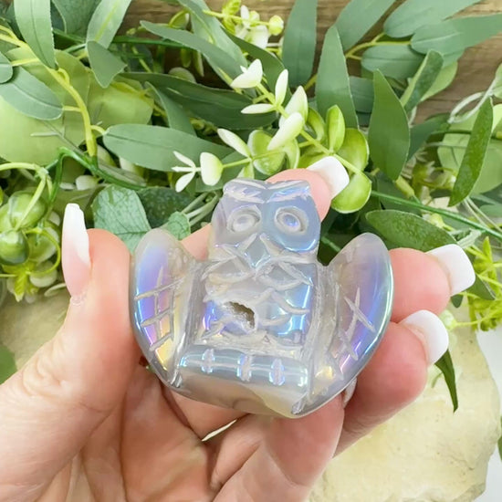 Owls symbolize wisdom, protection, and deep intuition, while Aura Quartz is known for its high vibrational energy that promotes inner peace, clarity, and a sense of magic. Combined, they create a powerful fusion of earthly wisdom and elevated spiritual frequency.
