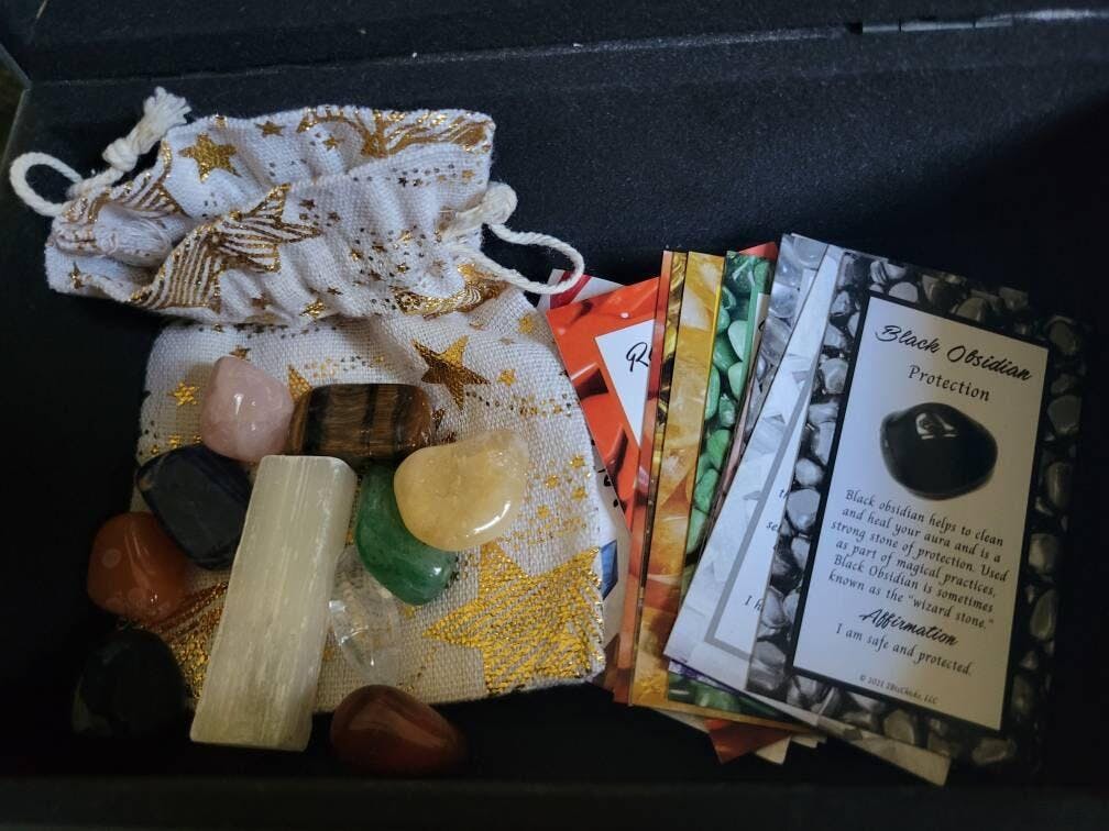 The crystal set includes some of the most popular and well-loved crystals available. The crystals were selected because they have been used for their properties, energies, and metaphysical attributes.