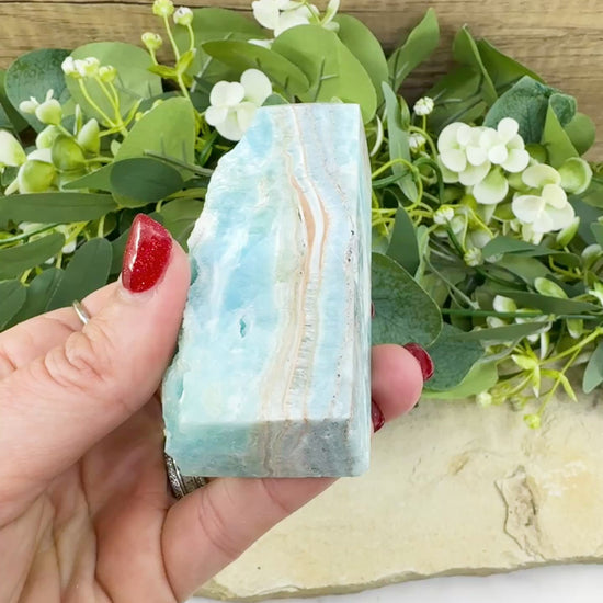 Caribbean Calcite Hemimorphite Tower No. 4 – 3.8″ Sliced & Druzy Crystal Tower | 220 g