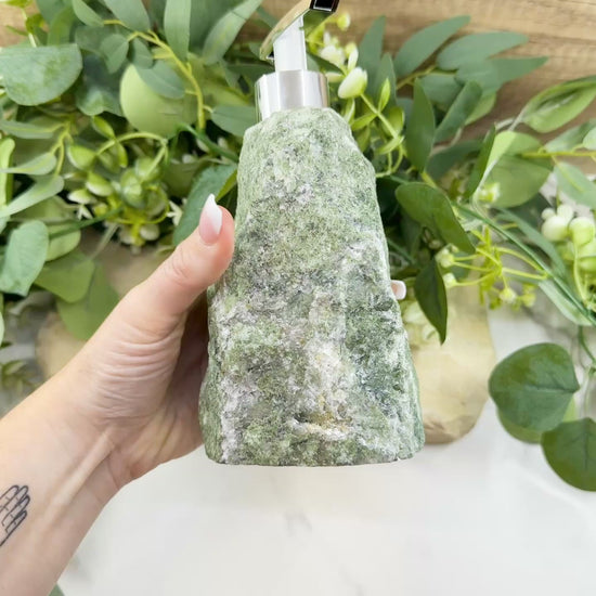 Green Tanzurine Soap Dispenser No.1 – Crystal Home Decor for Heart Chakra, Abundance & Self-Care