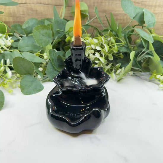 Lotus Black Ceramic Backflow Incense Burner – 4.8" Waterfall Smoke Fountain for Meditation & Zen Decor