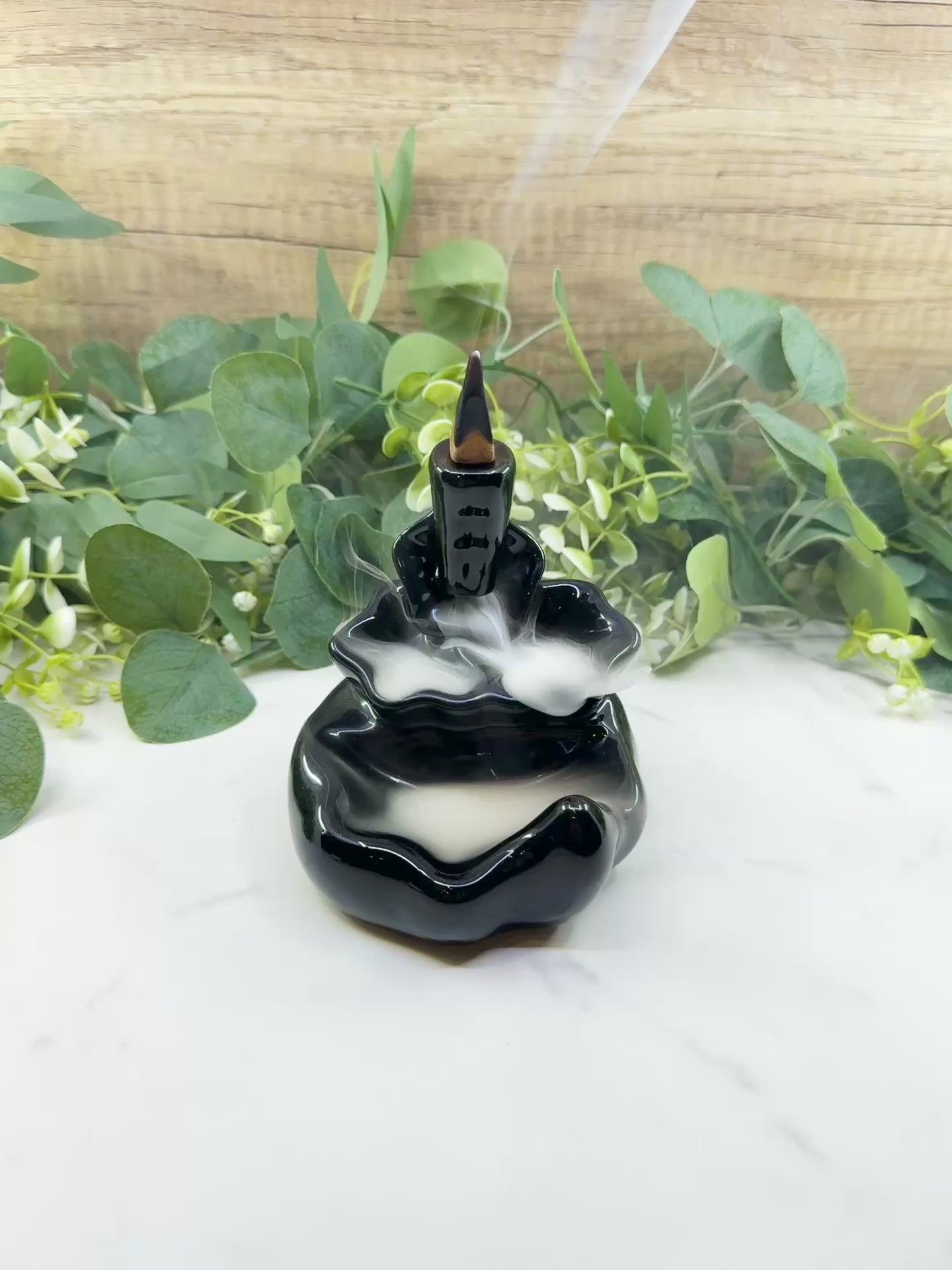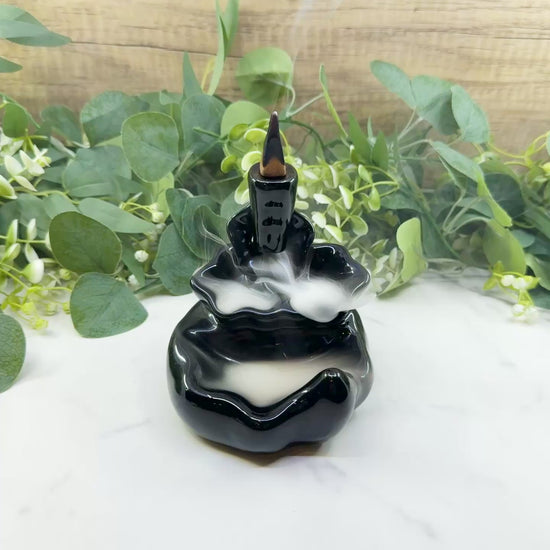 - Glossy Black Finish: Features a high-shine black ceramic glaze that beautifully reflects light and emphasizes the white "mist" of the cascading smoke.
