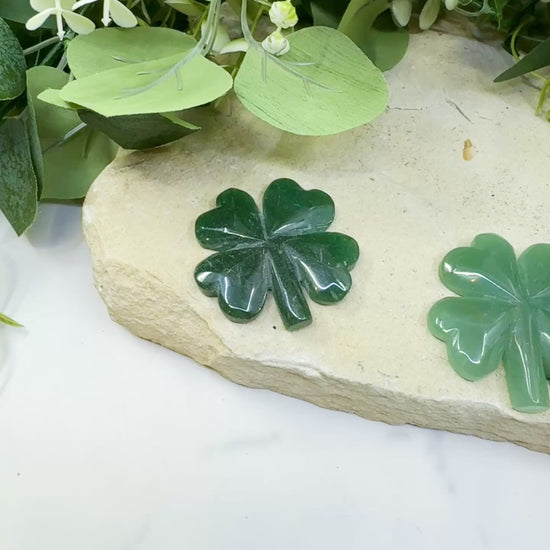 Invite consistent good fortune and prosperity into your life with this delightful Polished Green Aventurine Four-Leaf Clover carving. Green Aventurine is metaphysically celebrated as the ultimate "Stone of Opportunity," making it the perfect crystal pairing for the lucky four-leaf clover symbol. This smooth, polished carving fits comfortably in the palm of your hand and is ideal for carrying as a personal talisman or placing on your desk for a daily dose of luck and positive energy. Weighing 38 grams, this charming piece is believed to attract wealth, encourage optimism, and stabilize your emotional state.