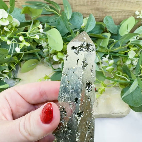 - Energy Director: The tower shape focuses and intensifies Pyrite's energy, directing it upward or outward into the environment for manifestation.