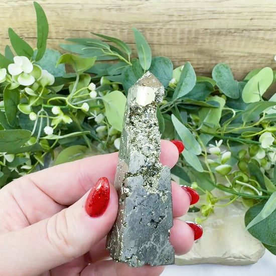 Focus your intent and amplify your prosperity with this beautiful Polished Pyrite Crystal Tower (Point No.2). Pyrite is known in the spiritual community as "Fool's Gold" for its lustrous appearance and powerful ability to draw forth riches, success, and vitality. At a size of 90 grams and shaped into a classic generator point, this piece is an ideal energetic tool for meditation, crystal grids, and directing positive vibrations into any area of your home or office. Use the tower's form to help clearly define and manifest your abundance goals.