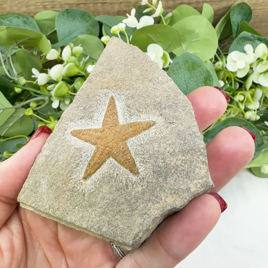 Step into Earth's ancient oceans with this exclusive collection of fossilized starfish — beautifully preserved in natural stone matrices. Each specimen features a distinct fossilized starfish embedded in sedimentary rock, offering a glimpse into marine life from millions of years ago.