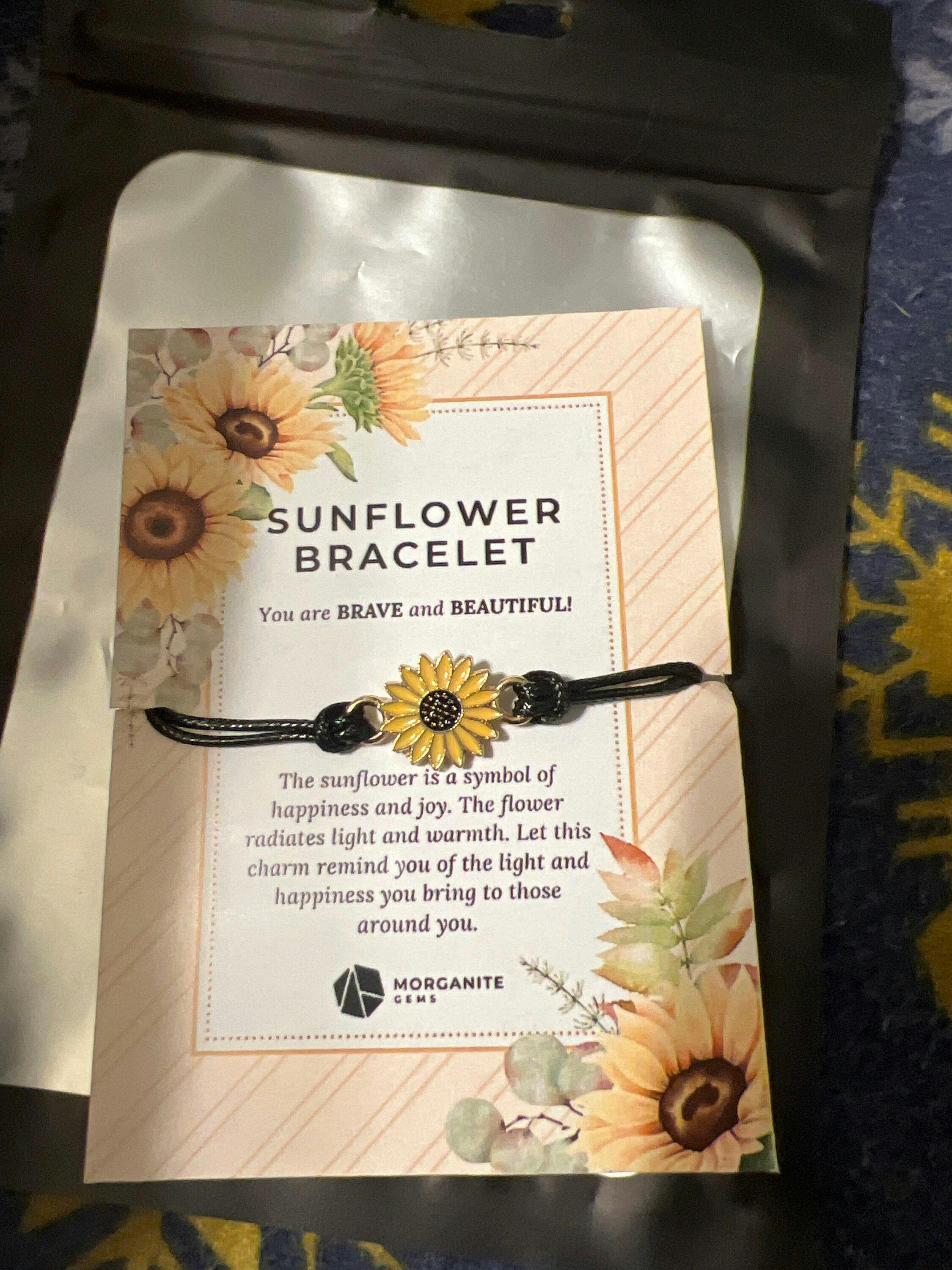The sunflower is a symbol of happiness and joy. The flower radiates light and warmth. The beautiful wishing bracelet makes the perfect little gift.