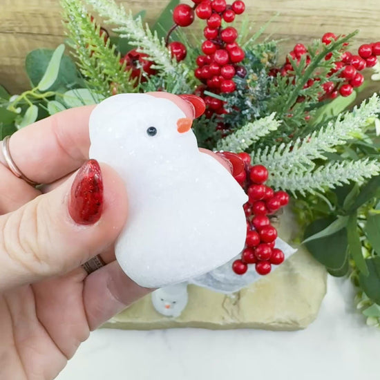 White Jade Crystal Snowman Carving (3oz) - Holiday Decor, Luck & Calming Purity Stone